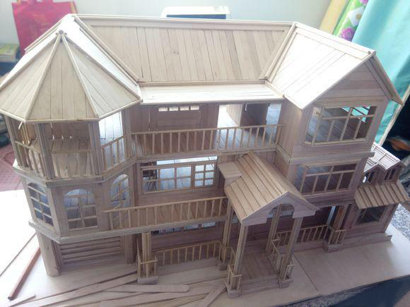 這是DIY手工大神用雪糕棒制作超漂亮的別墅模型!